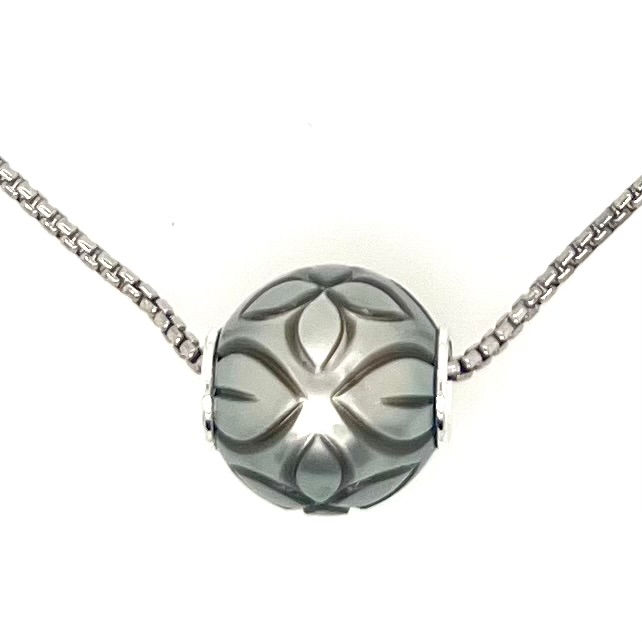 Carved Cultured Pearl Hummingbird in Egg Pendant